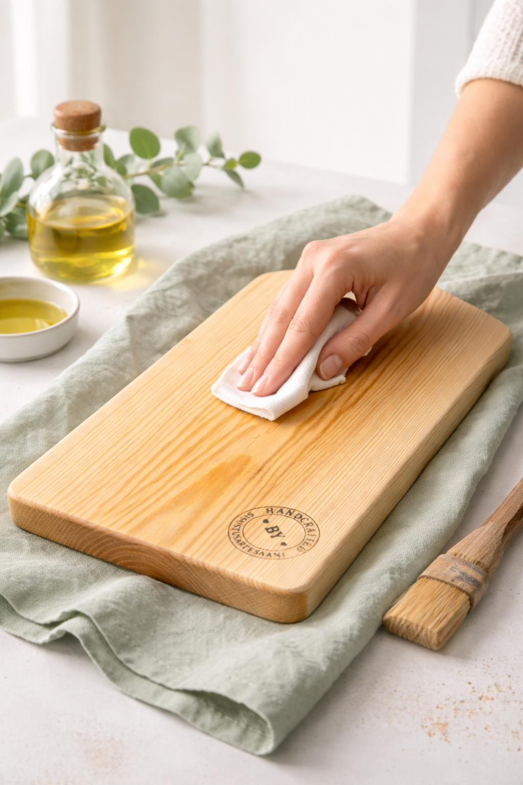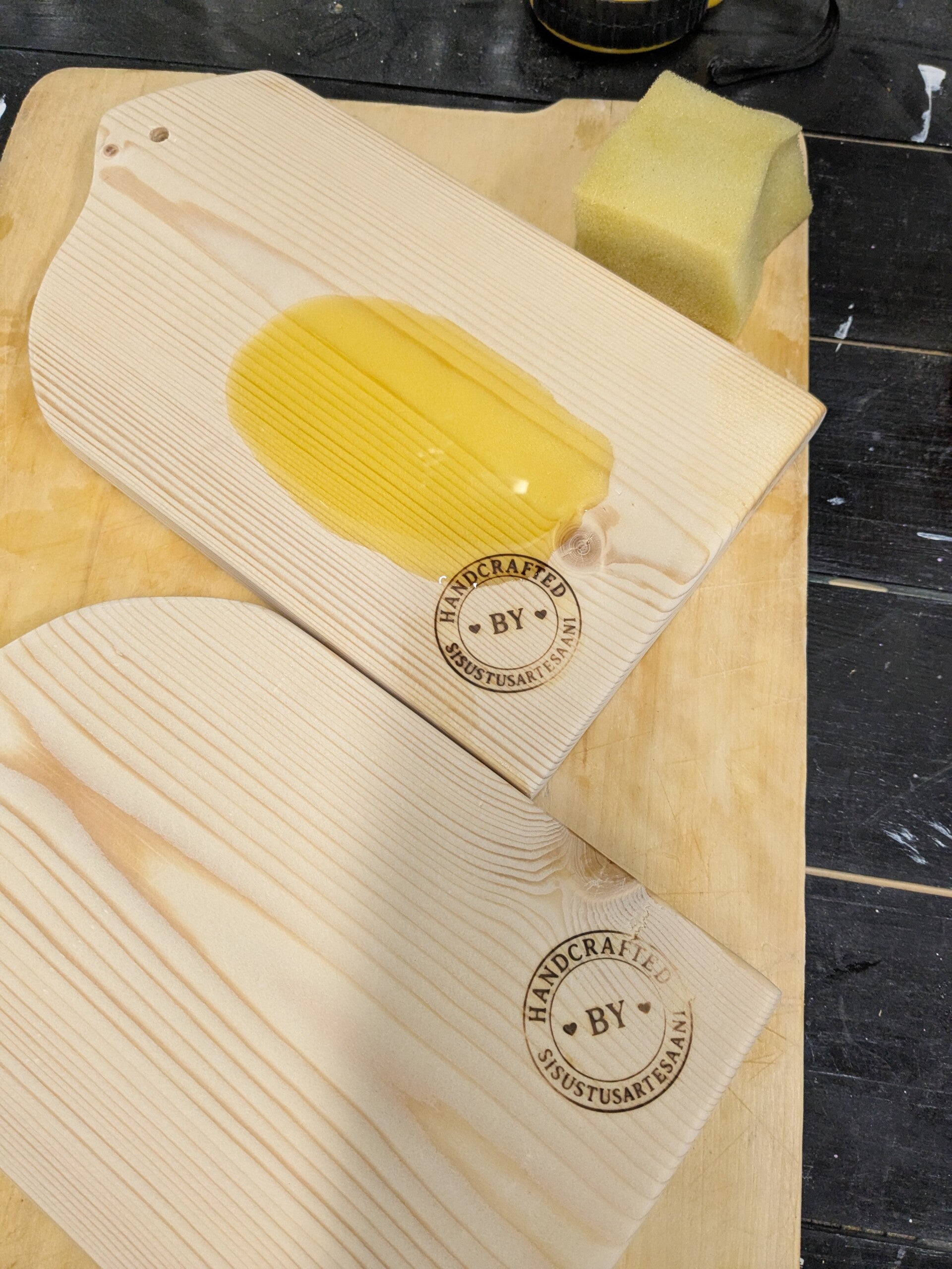 Leikkuulaudat öljytään suomessa valmistetulla pellavaöljyllä. Aito kylmäpuristettu pellavaöljy on luonnonmukainen ja imeytyy hyvin puuhun. Se antaa luonnollisen lopputuloksen, joka korostaa puun alkuperäistä rakennetta. Öljy muodostaa puulle kiiltävän, pitkäaikaisen ja kestävän pinnan, joka suojaa lialta, kosteudelta ja kuivumiselta.